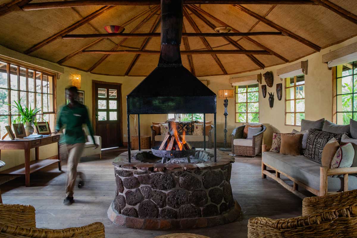 The beautiful hand-built bandas reflect the magic of the aesthetic traditions of the Bafumbira people. Each Banda has an ensuite luxury shower room, fireplace and private porch.